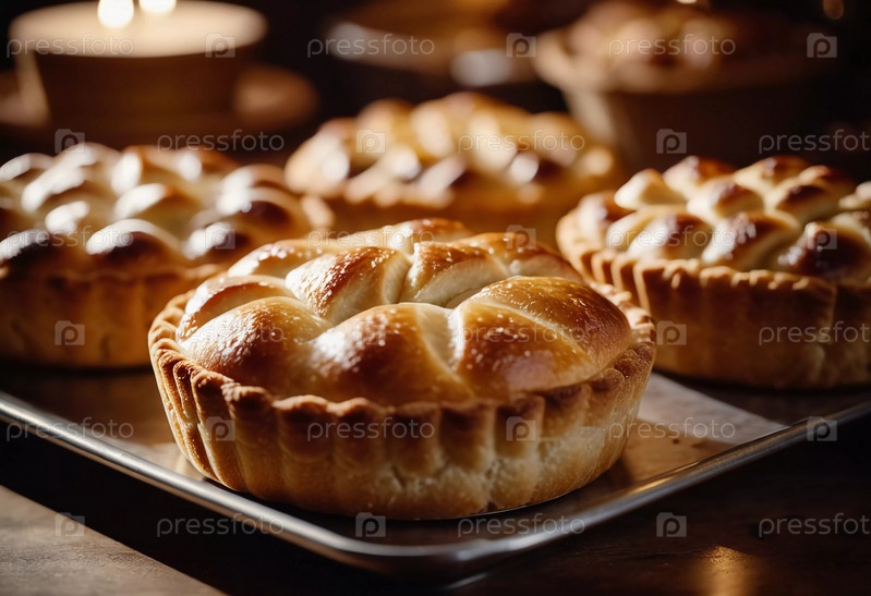 Свежевыпеченные кондитерские изделия и пироги привлекательно расположены на столе в теплой пекарне