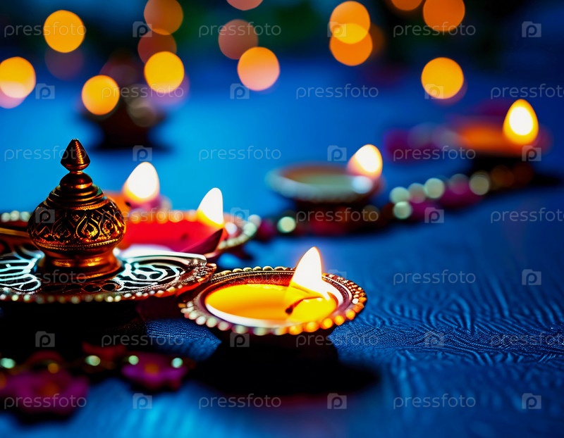 Цветные лампы дия светят мягко в темном пространстве, создавая мирную атмосферу.Этот красивый дисплей символизирует празднование Дивали и Рамадана, объединяющие культуры.Генеративный ИИ