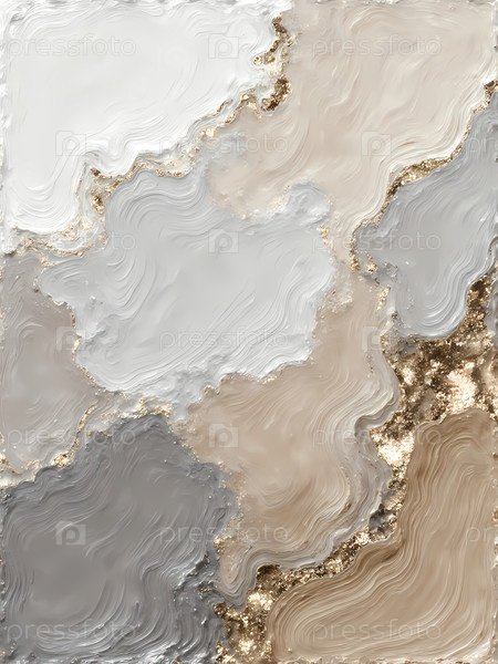 Мягкие волны белого, серого, золотого и бежевого красиво смешиваются в уникальном создании чернил из алкоголя, демонстрирующих гладкую текстуру и яркие цвета, завораживающие для наблюдения генеративный ИИ