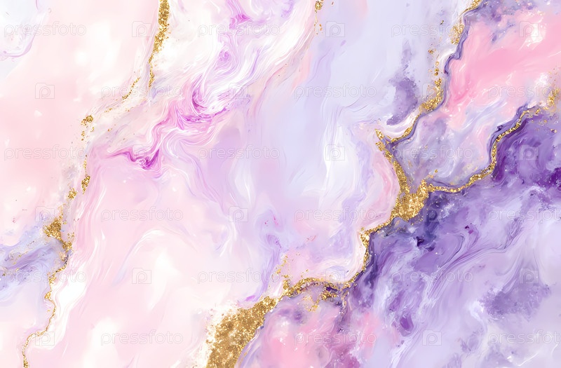Цвета изящно смешиваются, чтобы создать завораживающий вихрь розового, лилового и фиолетового цветов, подчеркиваемых блестящими золотыми акцентами, вызывающими чувство спокойствия и удивления Генеративный ИИ