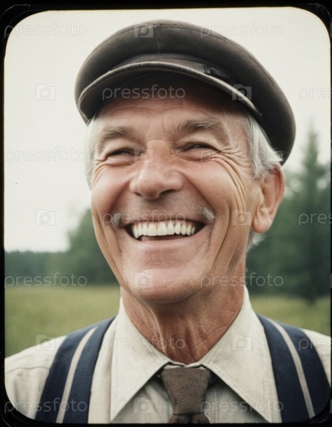 Веселый пожилой финляндец стоит в ярко-зеленом лесу, демонстрируя широкую улыбку, которая отражает счастье и удовлетворение в солнечный день. Скандинавский тип лица. Европейский пенсионер. Генеративный ИИ