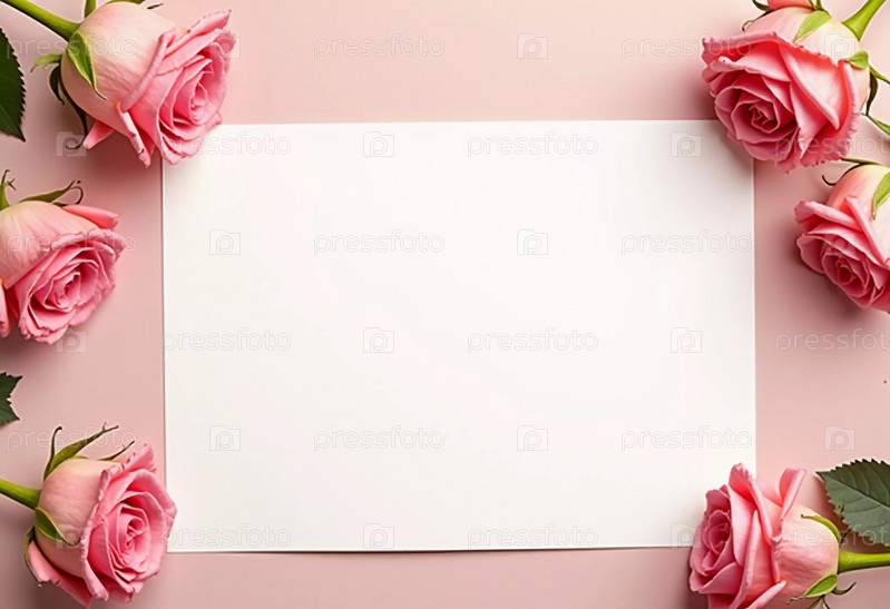Деликатные розовые розы окружают пустое пространство, идеально подходит для написания личных сообщений.Эта прекрасная цветовая аранжировка придает элегантность любому случаю.Фон на день рождения, День матери, День святого Валентина