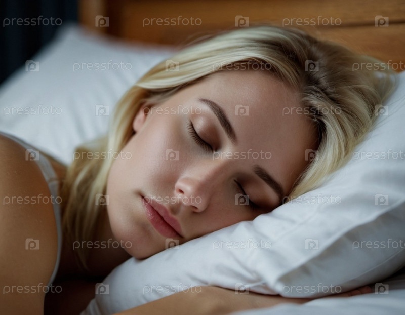Мирная блондинка спокойно спит в уютной кровати, окружена мягкими подушками и безмятежной ночной атмосферой. генеративный ИИ. молодая блондинка мирно спит в постели, наслаждаясь тихим моментом