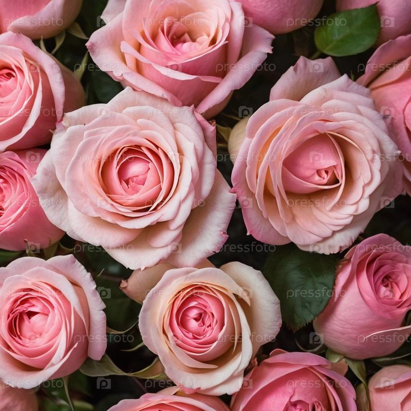 Очаровательное расположение мягких розовых роз раскрывает их пышные листья и богатые оттенки, создавая захватывающий дисплей, идеально подходящий для празднований или в качестве искреннего подарка Generative AI