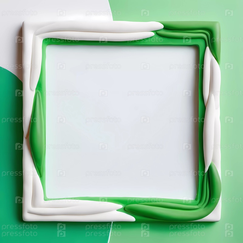 Прямоугольная рама с уникальным абстрактным дизайном белого и зеленого цветов сидит на мягком смешанном белом и зеленом фоне, предлагая свободное пространство для творческого ввода