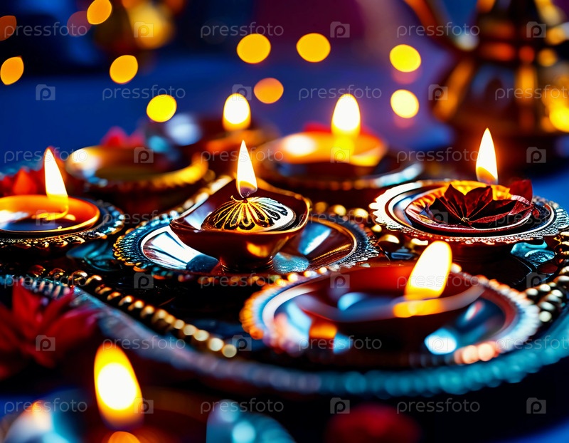Цветные лампы дия светят мягко в темном пространстве, создавая мирную атмосферу.Этот красивый дисплей символизирует празднование Дивали и Рамадана, объединяющие культуры.Генеративный ИИ