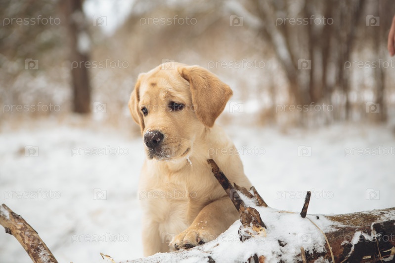 милый щенок лабрадора зимой