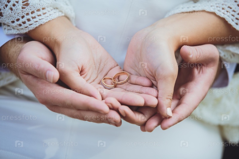 обручальные кольца в руках