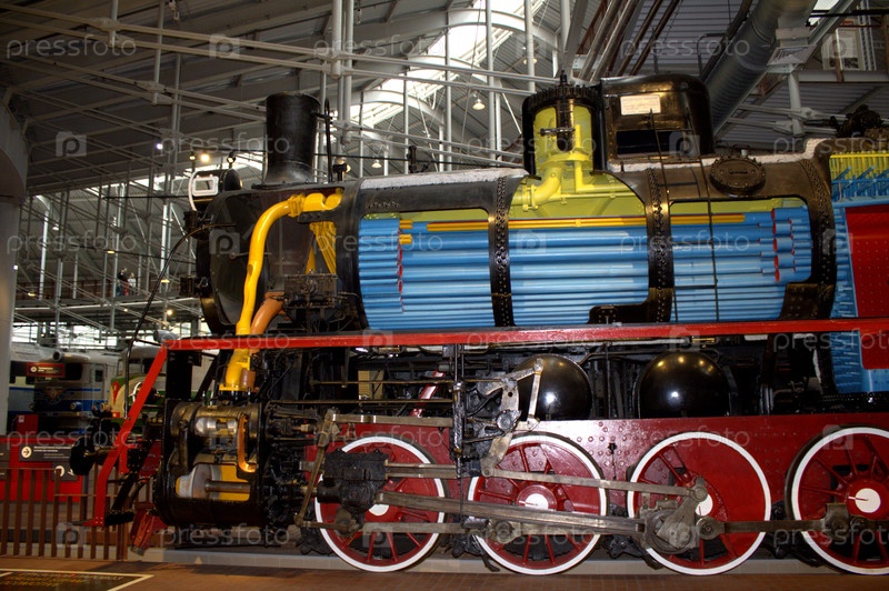 Паровоз в разрезе в музее Железных дорог России в Санкт-Петербурге
