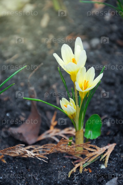 Белый крокус под солнцем