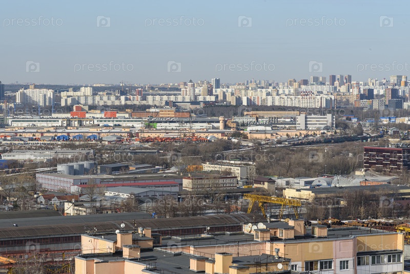 Панорама московского промышленного района Очаково и жилых кварталов города