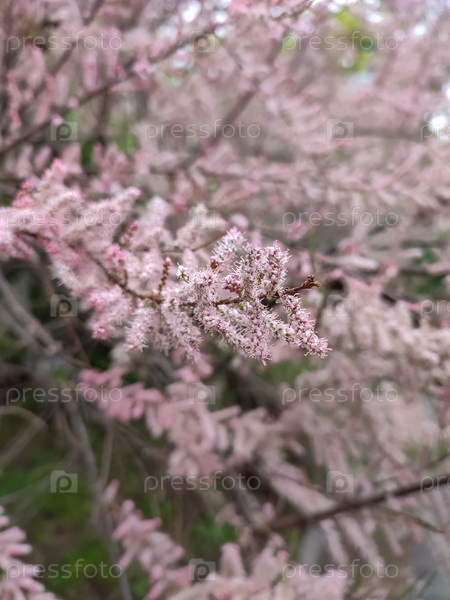 Нежные розовые цветы Тамарикса крупным планом с мягким боке