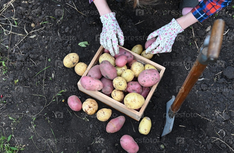 Уборка картофеля в саду днем