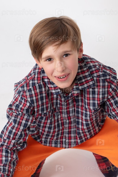 Подросток в квадратной рубашке смотрит в камеру и улыбается