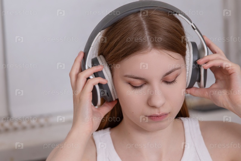 Молодая женщина с длинными волосами сосредоточена на прослушивании музыки через большие наушники.Она находится в комфортной помещенной обстановке, наслаждаясь своим слушательским опытом