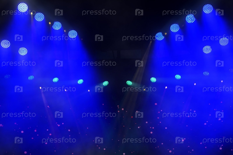 Сцена с огнями.Светы синие, фиолетовые и розовые.На сцене много огней