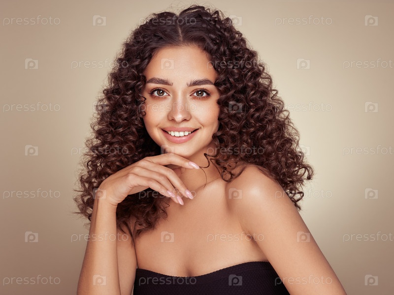 Красивая улыбающаяся женщина с афро локонами