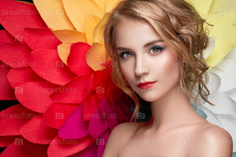 Красивая женщина на фоне большого цветка