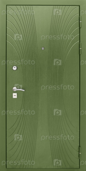 Модель входной металлической двери, изолированной на белом фоне