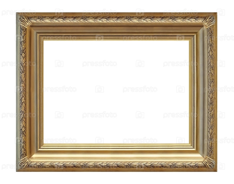 Золотая рама для картин, зеркал или фотографии изолированной на белом фоне