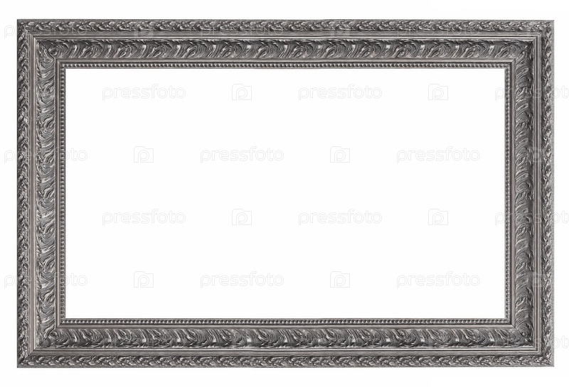 Панорамная серебряная рама для картин, зеркал или изолированной фотографии на белом фоне с готовым вырезом
