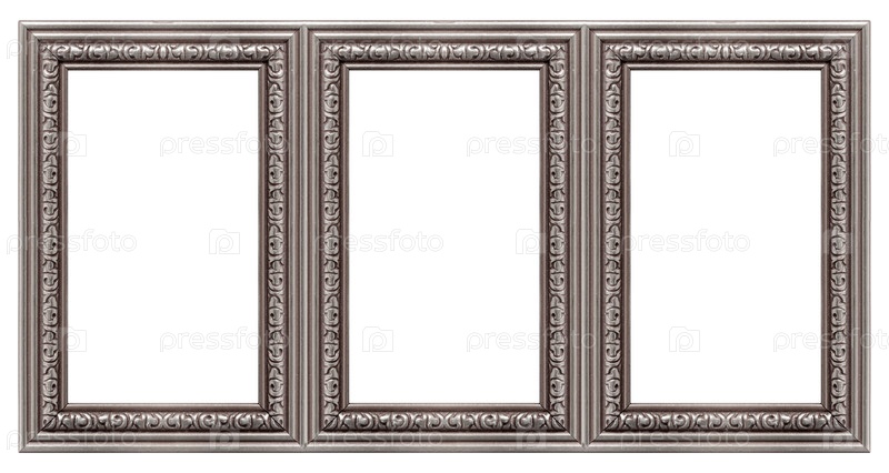Тройная серебряная рама (триптих) для картин, зеркал или фотографий, изолированных на белом фоне