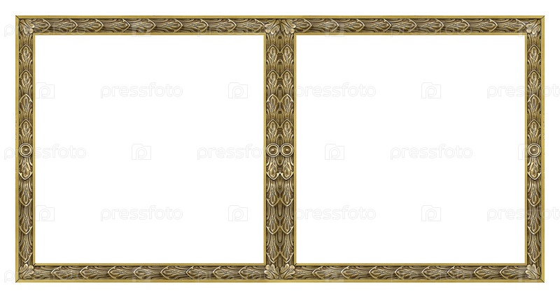 Двойная золотая рама (диптих) для картин, зеркал или фотографий, изолированных на белом фоне