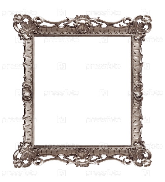 Серебряная рама для картин, зеркал или изолированной фотографии на белом фоне