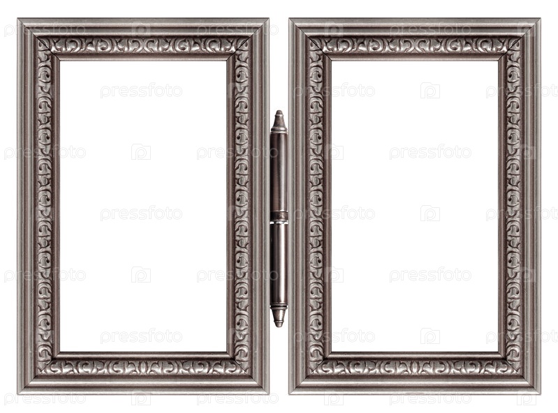 Двойная серебряная рама (диптих) для картин, зеркал или фотографий, изолированных на белом фоне