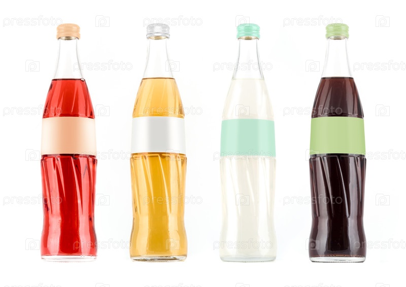 Планировка бутылок для безалкогольных напитков на белом фоне с пустой этикеткой
