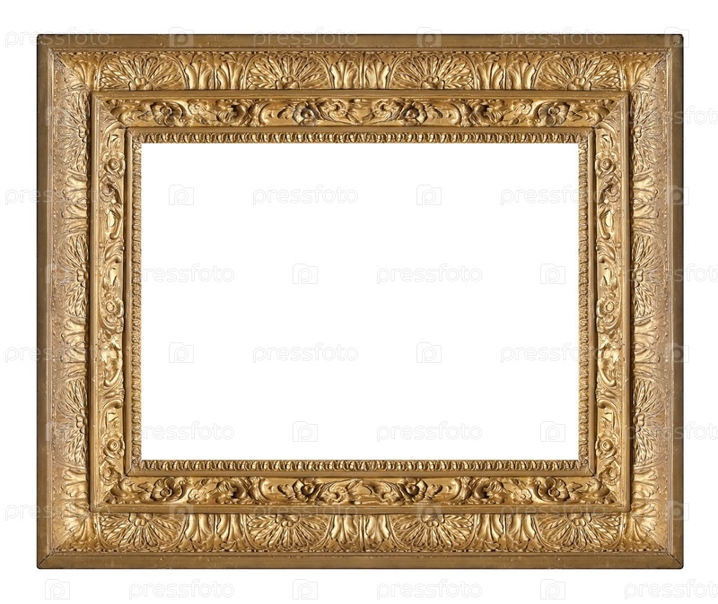Золотая рама для картин, зеркал или фотографии изолированной на белом фоне