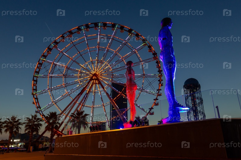 Футуристическая инсталляция движущихся скульптур Али и Нино в Батуми, Грузия