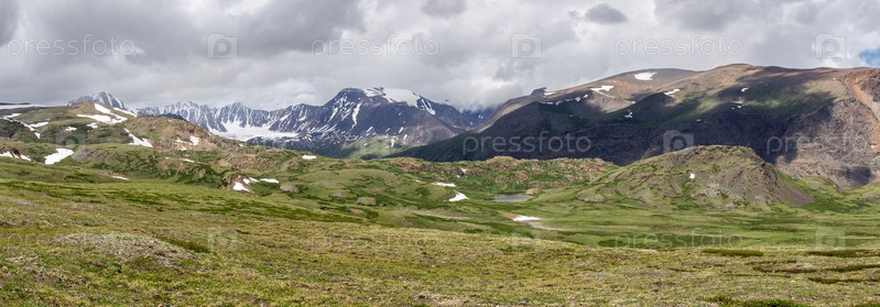 Красивый пейзаж горных хребтов, ледников, заснеженных вершин