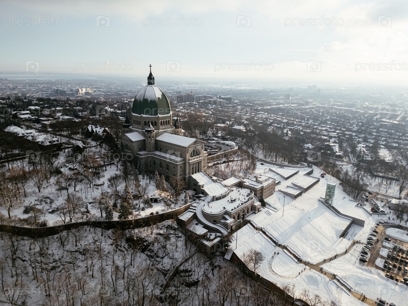 Вид с воздуха базилики католического собора Оратория в Монреале, Квебек, Канада