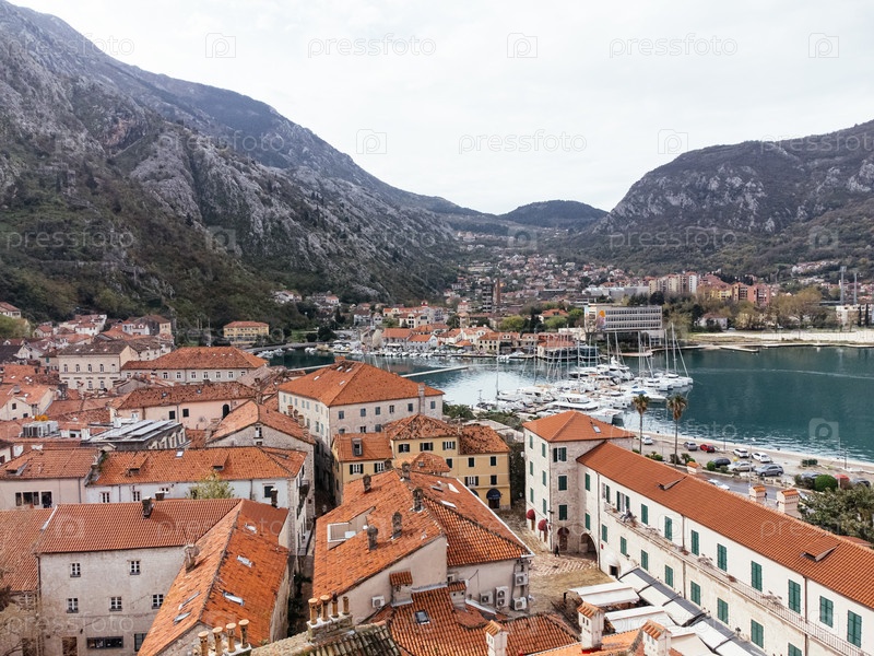 Вид с воздуха старого города Котор и залива Котор, Черногория, Европа