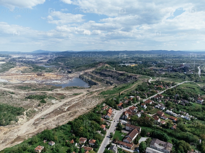 Заброшенный, мертвый город недалеко от ямы Колубара на угольной добыче по открытой дороге