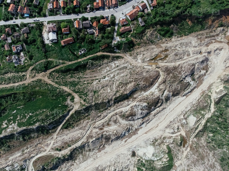 Заброшенный, мертвый город недалеко от ямы Колубара на угольной добыче по открытой дороге