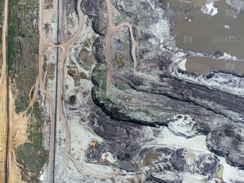 Колубарская яма на угольной добыче по открытой дороге.Лазаревац, Сербия