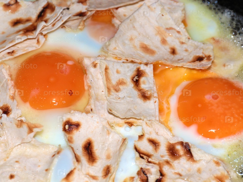 Приготовление смешанных яиц для семейного утреннего завтрака