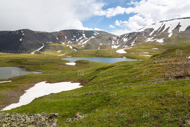 Красивый пейзаж озера в высокой горной долине