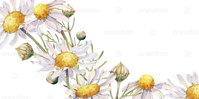 Дикие ромашки с зелеными бутонами и листьями, изолированными на белом фоне