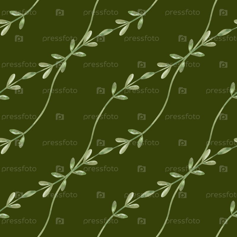 Бесшовный акварельный рисунок с зелеными травяными стеблями на темном фоне. элегантный диагональный ботанический орнамент