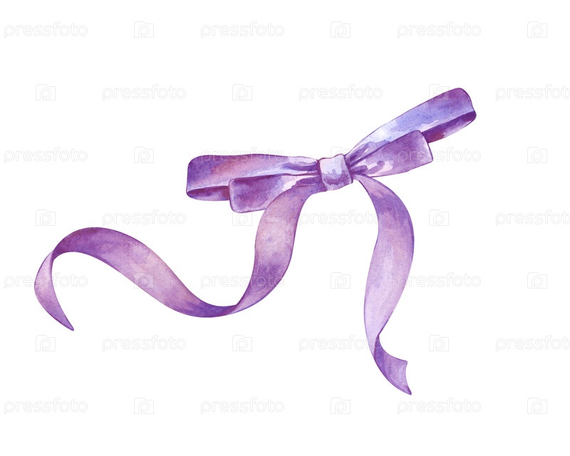 Ручная акварельная иллюстрация тонкой фиолетовой ленты, привязанной к луку. Элегантная атласовая текстура с плавными концами. Изолированный элемент для пасхального декора, свадебных приглашений, подарочной упаковки, открыток на день рождения и женских диз