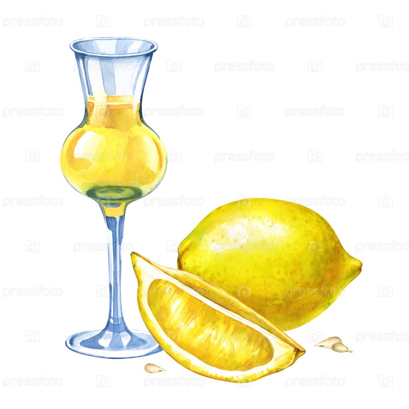 Фантастический стакан с желтым напитком, целым лимоном и сочным кусочком изолированным на белом