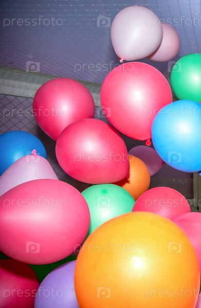 Красочные воздушные шары различных размеров и оттенков, включая розовый, красный, синий, зеленый и оранжевый, плавают в игривом скоплении.Они освещаются ярким светом, повышая их жизнеспособность