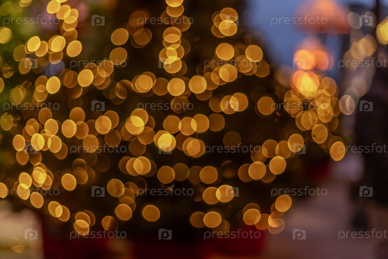 Золотой эффект боке с размытыми кругами света, создавая теплую и праздничную атмосферу