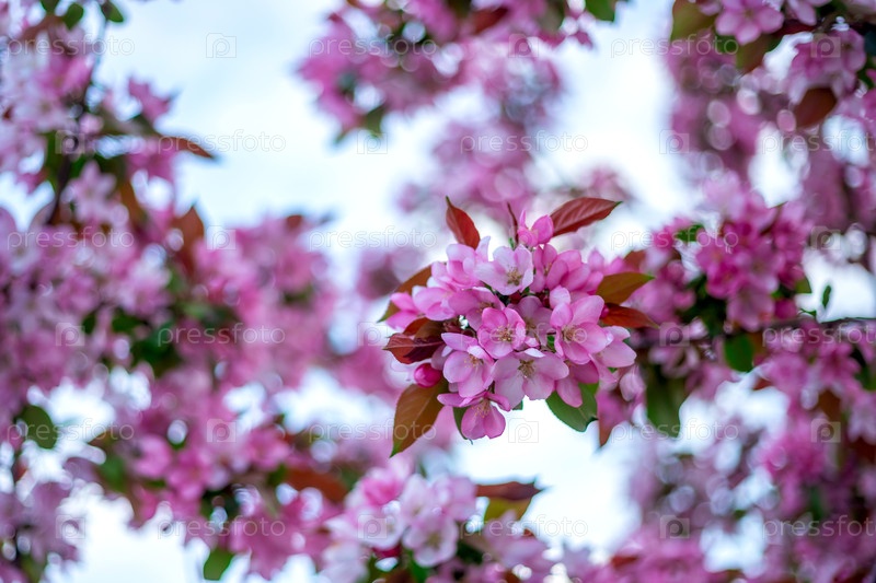 Розовые и белые цветы заполняют сцену, подчеркиваются свежими зелеными листьями.Нежные цветки сгущаются вместе, создавая яркий дисплей цвета на мягко размытом естественном фоне