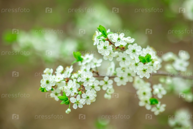 Группа хрупких белых цветов с ярко-зелеными листьями на мягком размытом естественном фоне, подчеркивая свежую, спокойную красоту природы и нежный переход к весне