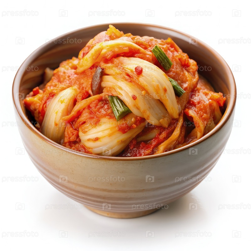 Чаша кимчи с овощами на белом фоне