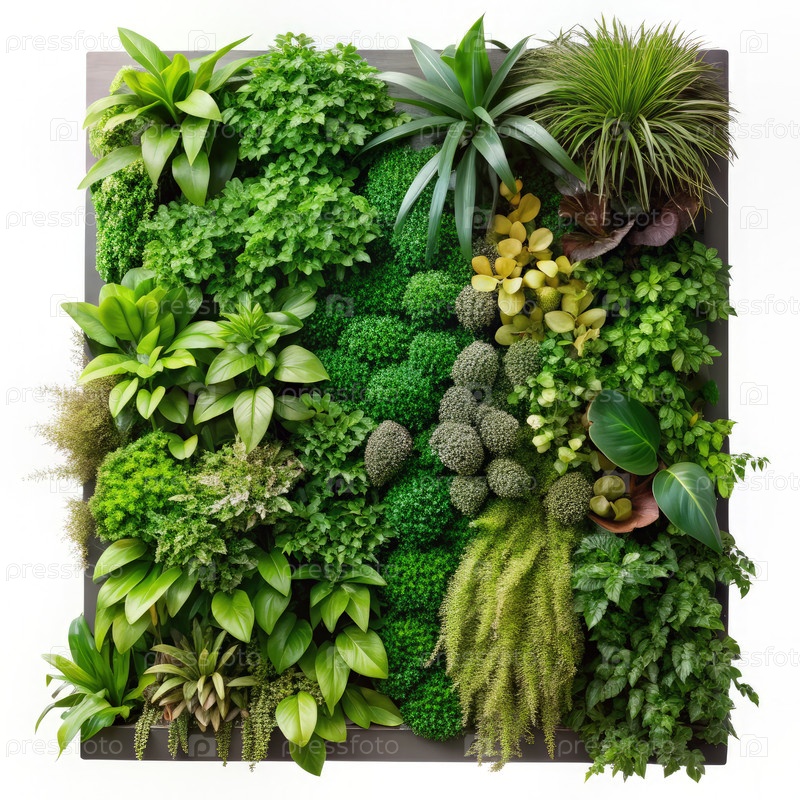 Луш Вертикальный сад Зеленая стена отображается на свежем белом фоне в современной внутренней обстановке. генеративный ИИ